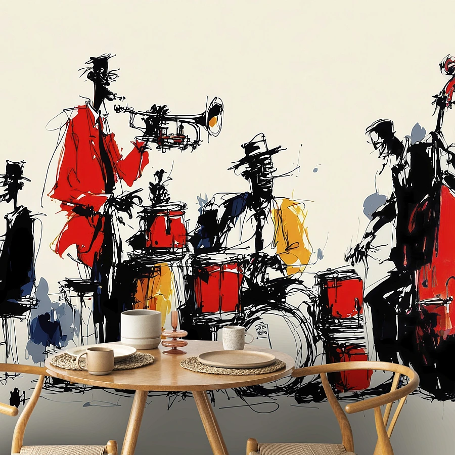 Bring rhythm and artistic energy into your space with this abstract jazz band wall mural, a bold tribute to music and creativity.