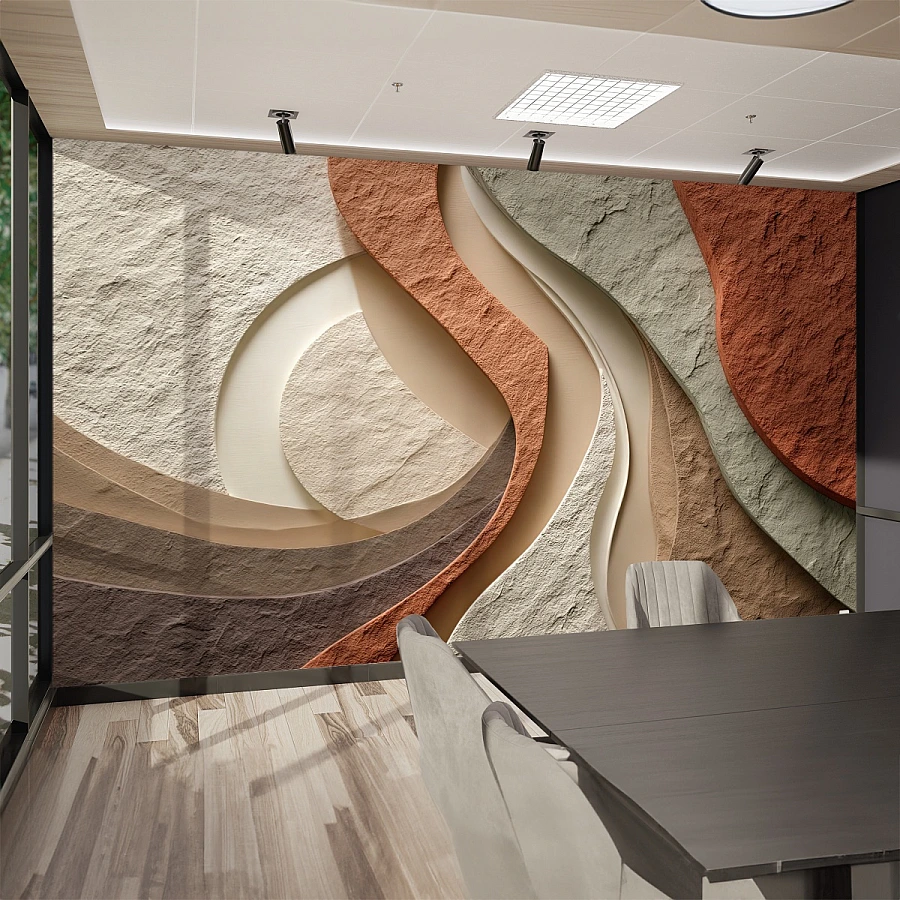 The soft transitions and natural color palette give this modern abstract wall mural a calm and balanced presence. Its textured surface adds depth while maintaining a clean and minimal aesthetic suitable for contemporary interiors.