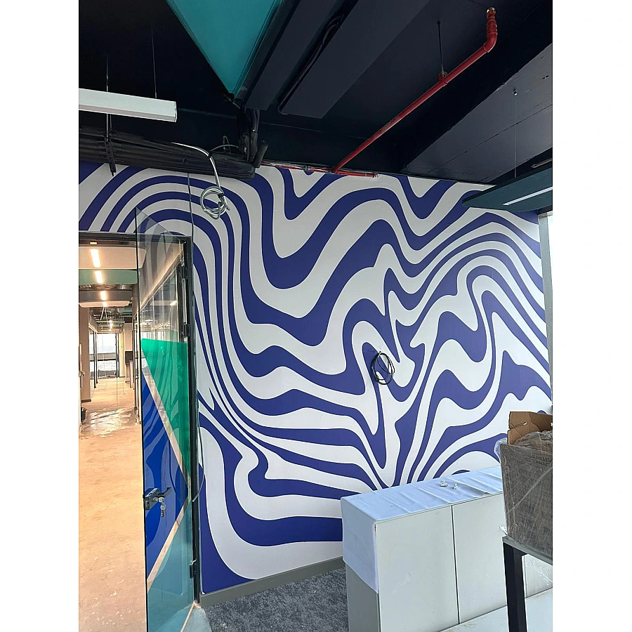 Perfect for modern and creative environments, this mural transforms the wall into a bold design statement. It brings a playful yet sophisticated edge to the space, ideal for those who want to stand out.