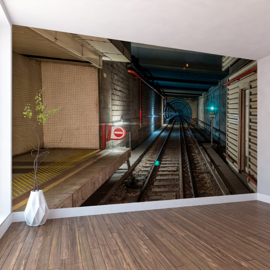 Subway Tunnel Perspective Wall Mural – Urban Industrial Track Design