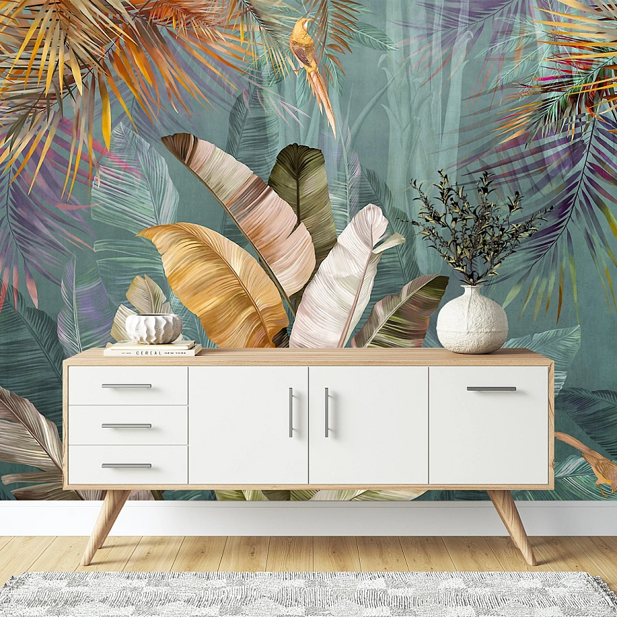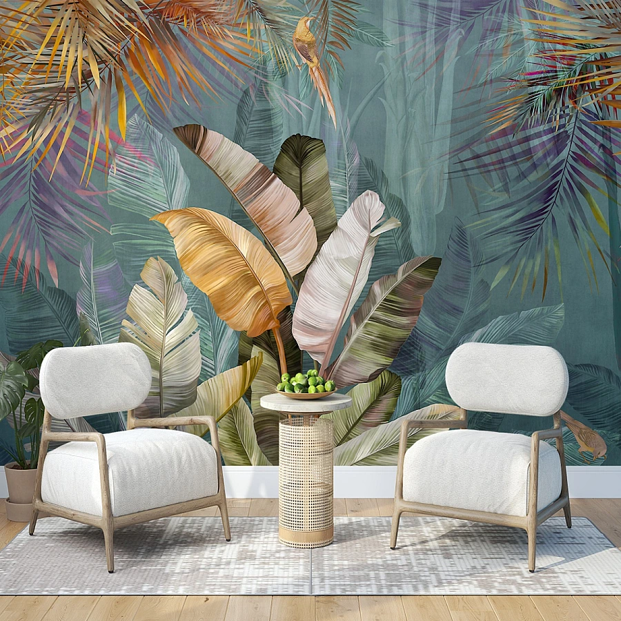 Colorful Tropical Leaves Wall Mural – Modern Botanical Jungle Design