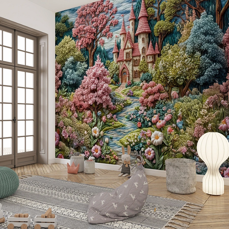 Perfect for children’s rooms and imaginative spaces, this mural transforms the wall into a whimsical fairy tale world. It brings creativity, warmth, and a sense of wonder into everyday life.