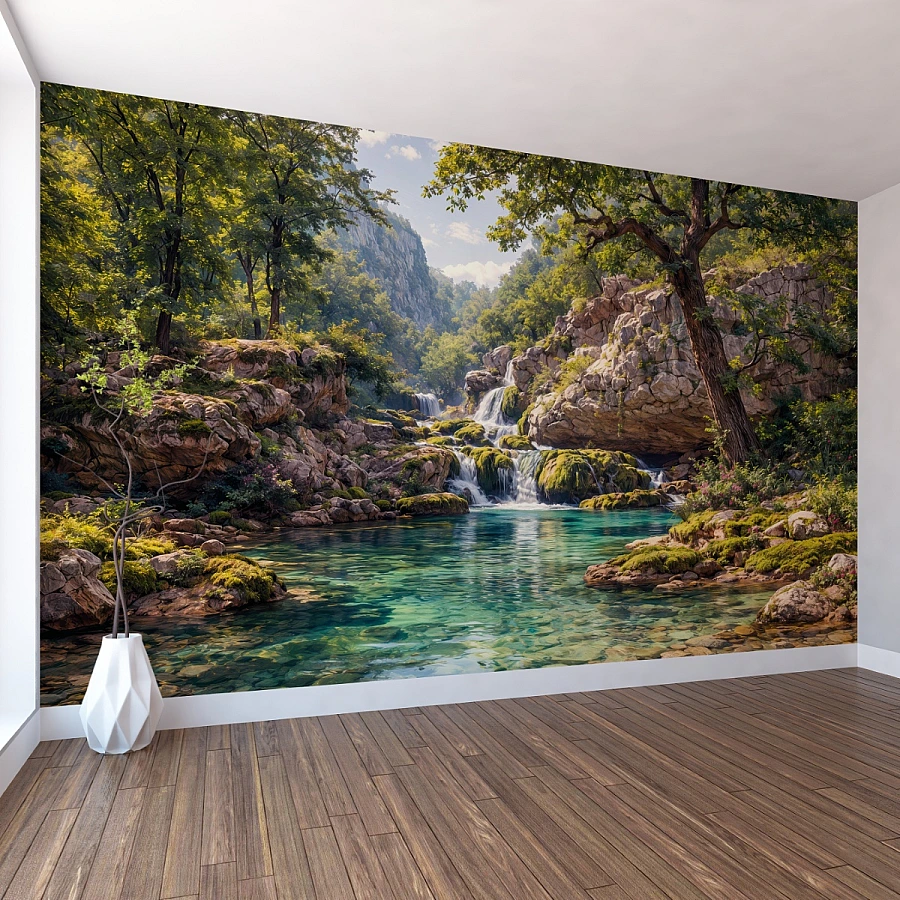 - Quality & Safety: Forest Waterfall Lagoon Wall Mural – Scenic Nature Oasis Design is produced using premium materials and is GREENGUARD certified. Odor-free and safe for homes, including bedrooms and kids’ rooms.