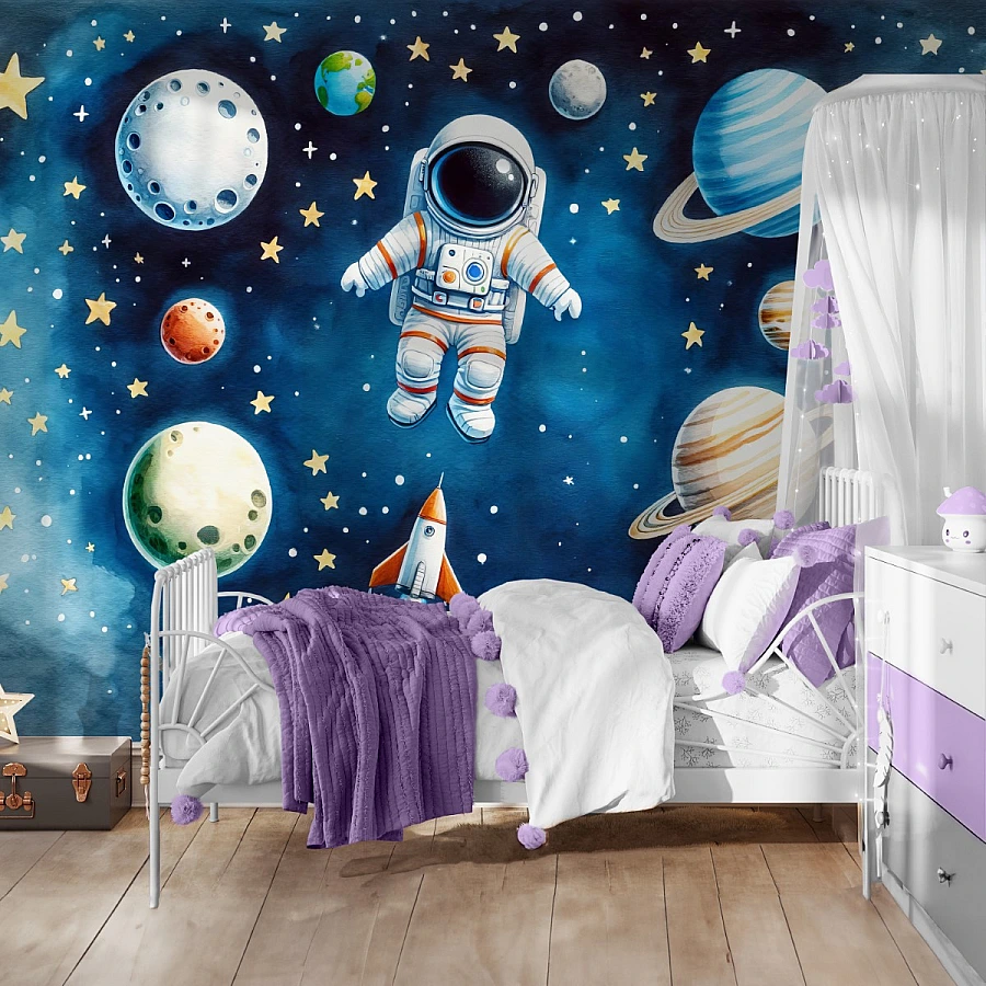 Tags: kids, space, astronaut, planets, galaxy, nursery, cartoon, mural