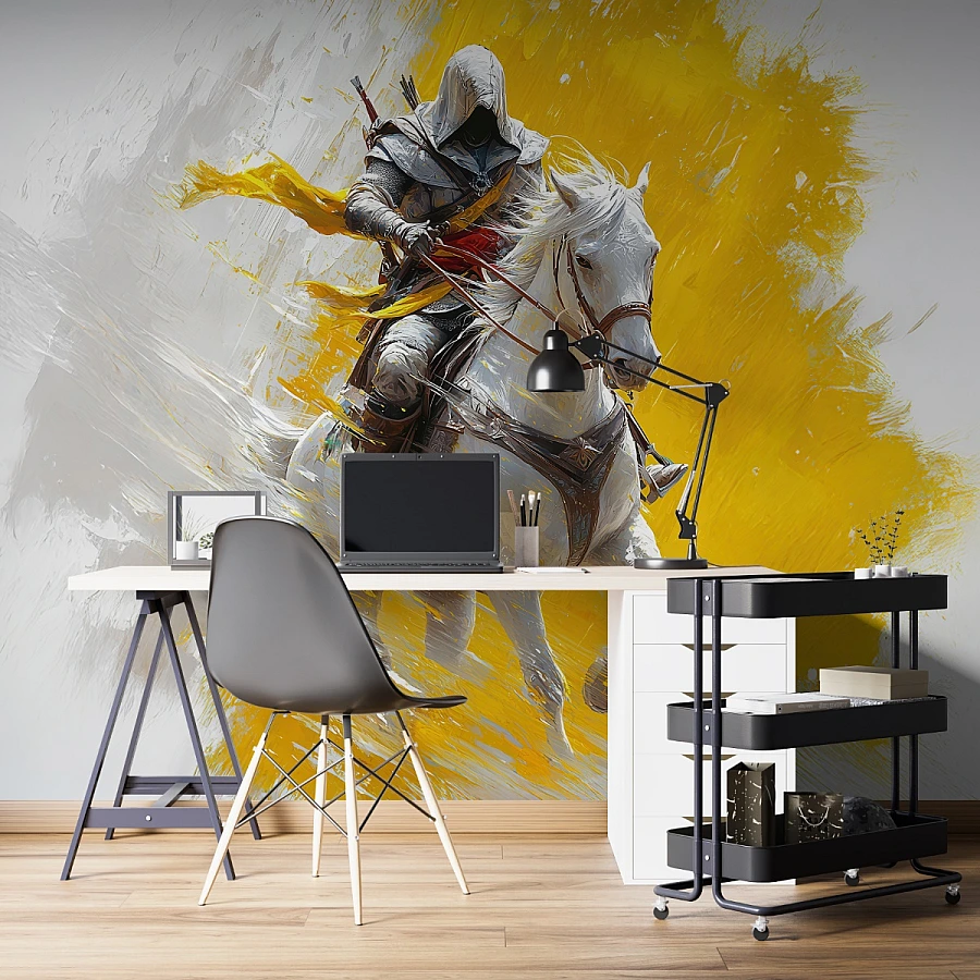 Tags: knight mural, horse wallpaper, abstract wall mural, yellow mural, action wallpaper, modern art