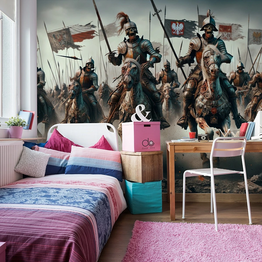 Perfect for bold interiors and themed spaces, this mural transforms the wall into an epic battlefield scene. It brings history, adventure, and a strong statement presence into the room.