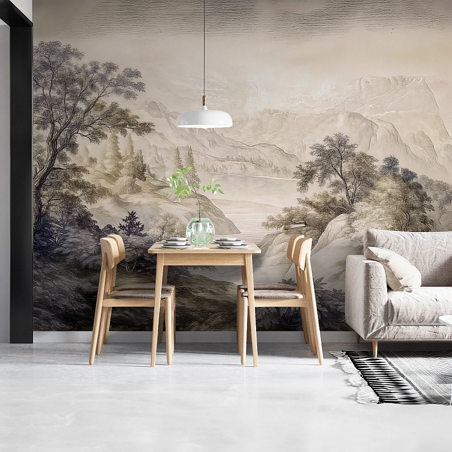 Perfect for minimalist and contemporary interiors, this mural transforms the wall into a tranquil natural panorama. It brings calmness, balance, and understated luxury, making it an ideal backdrop for modern living spaces.