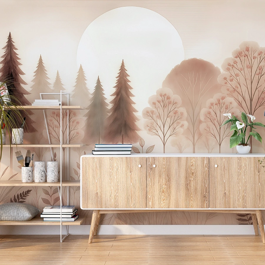 Perfect for modern and serene interiors, this mural transforms the wall into a tranquil woodland scene. It brings softness, balance, and a natural elegance into the space.
