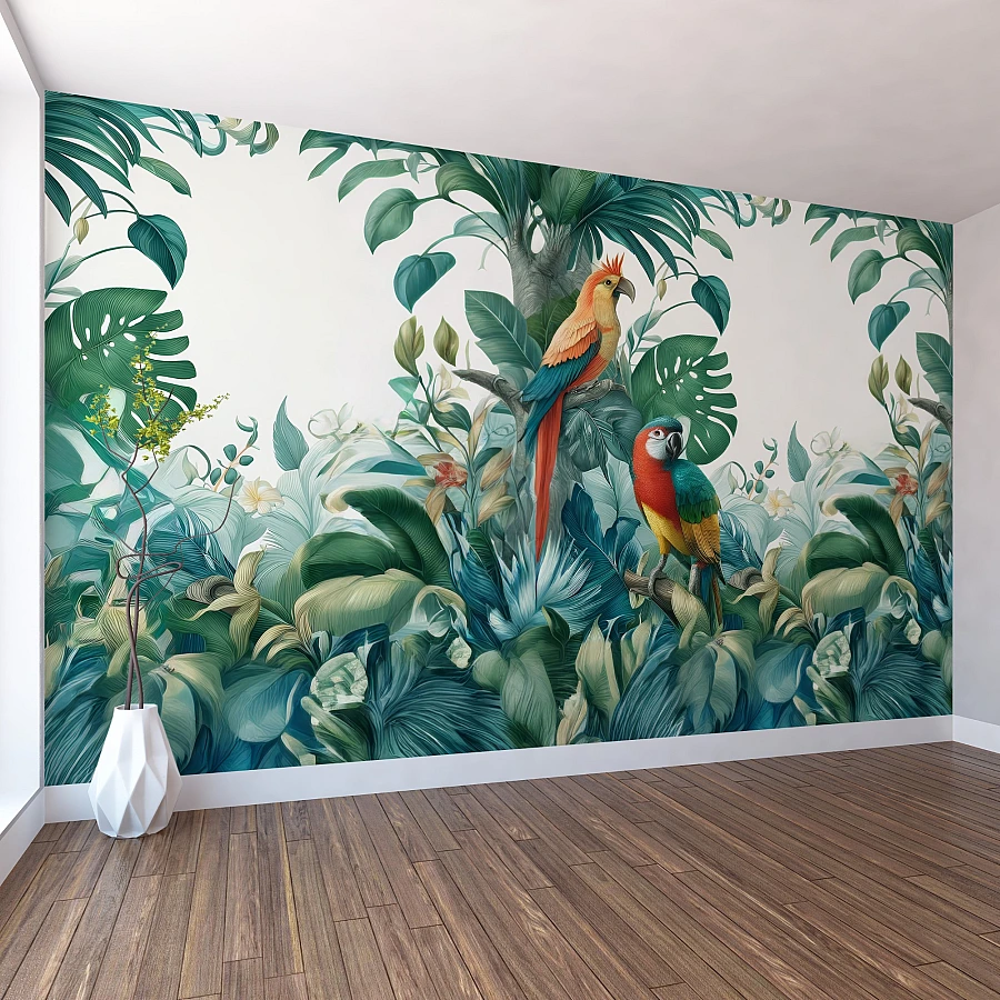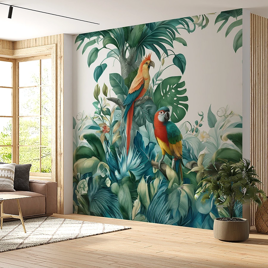 Tropical Parrot Wall Mural – Botanical Bird Jungle Design