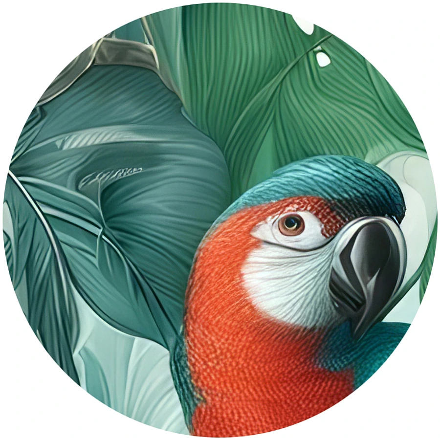- Parrots with lush tropical foliage