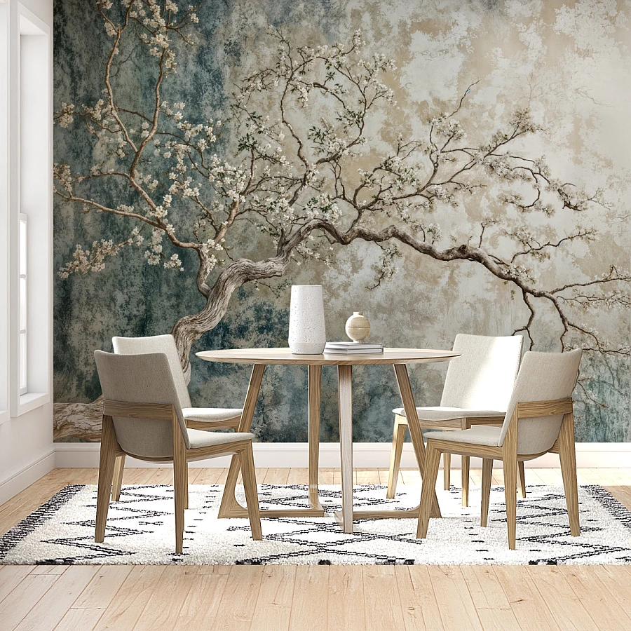 Bringing together timeless elegance and artistic depth, this vintage blossom tree wall mural transforms your space into a serene natural masterpiece. A gracefully spreading tree adorned with delicate blossoms stretches across a textured, painterly background, creating a sense of calm and refined beauty.