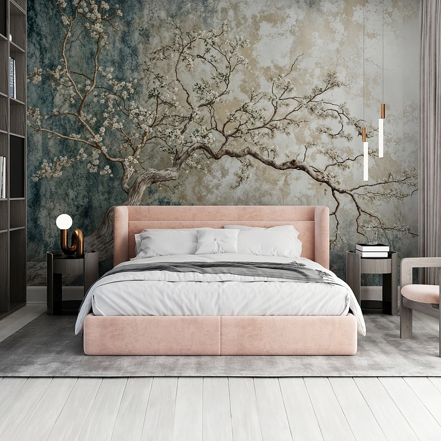 Tags: tree wall mural, blossom wallpaper, vintage wall art, nature mural design, artistic tree wallpaper, elegant bedroom wall, classic wall decor