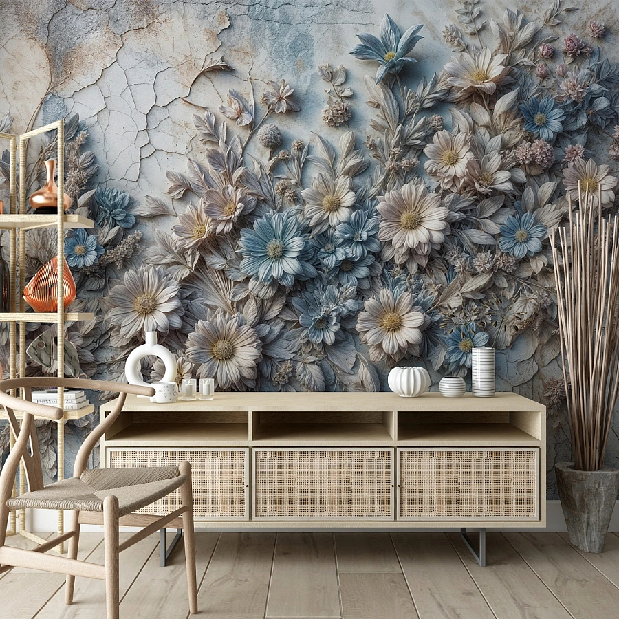 Perfect for sophisticated and serene interiors, this mural transforms the wall into a timeless floral composition. It brings elegance, texture, and a peaceful atmosphere into the space.