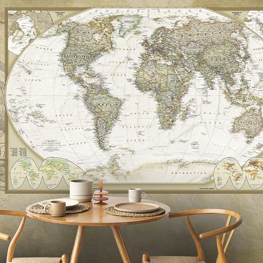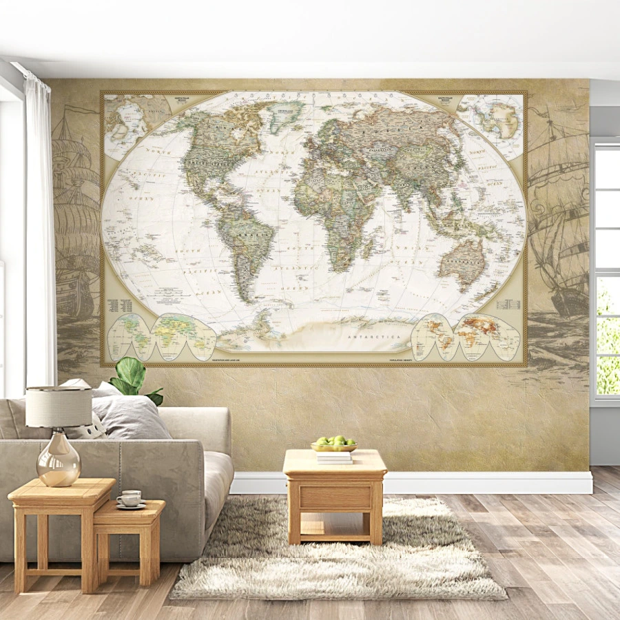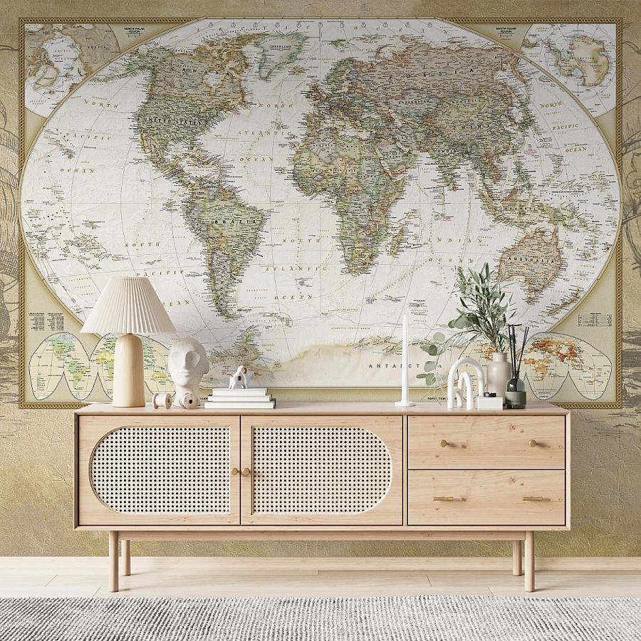 Perfect for both modern and classic interiors, this mural transforms the wall into a statement piece that inspires curiosity and travel. It blends decorative elegance with educational appeal, creating a balanced and meaningful atmosphere.
