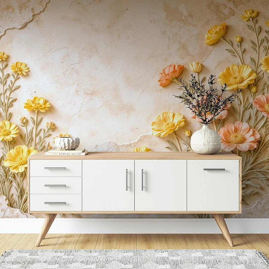Perfect for cozy and modern interiors, this mural transforms the wall into a soft floral statement. It introduces warmth, harmony, and a timeless decorative charm, making the space feel both welcoming and stylish.